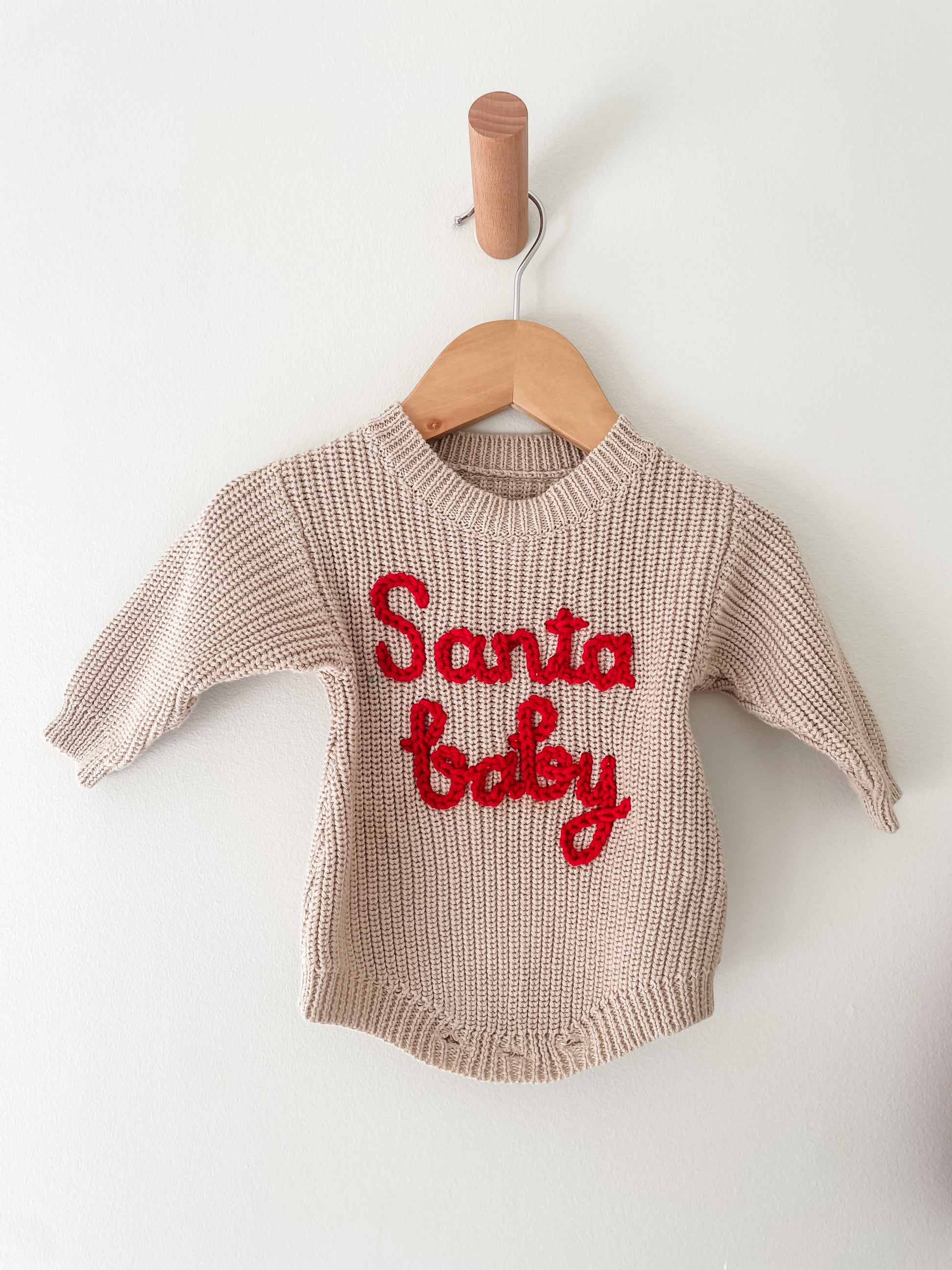 JUMPER INSTRUCTIONS: Please let us know specific yarn colours you want used; or any other details! For example: “all cursive lowercase in ballet pink” “vanilla cream as in the taupe picture” etc.